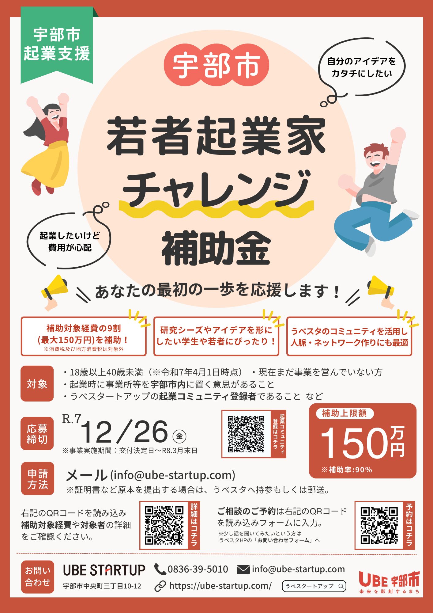 宇部市若者起業家チャレンジ補助金のお知らせ